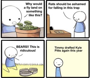 Draft Grade: B.  He basically got 3 2nd round graded players and Tajae Spears to backup his Tony Pollard.  Of course if he had stayed put he could have had Brock Bowers.  It’s easy to look back and judge.  But you win some and you lose some and despite the way the Titans GM and Pollard’s agent fucked Mike over, he’ll still be competitive.